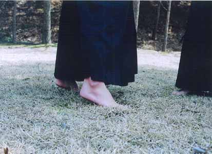 that place right between the feet, the natural bowing position. By backwards is