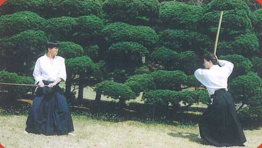 if confident, or retreats if unsure. Again, as in sword work, uke