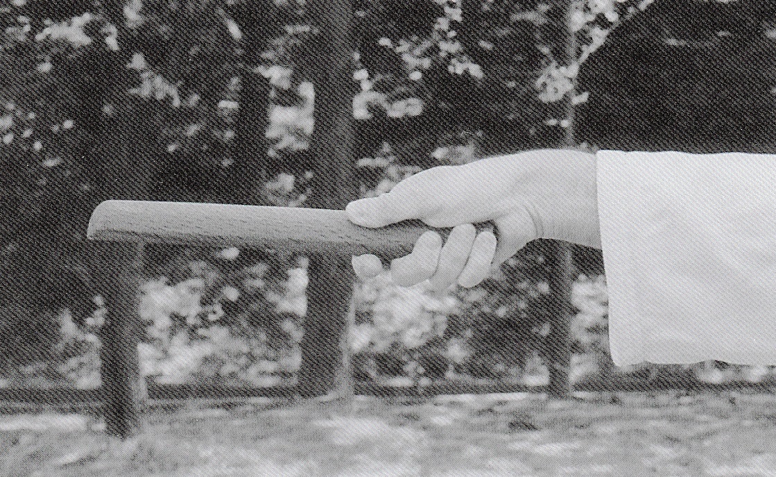 holding a bokken is hands spread one fist-width apart to gain a measure